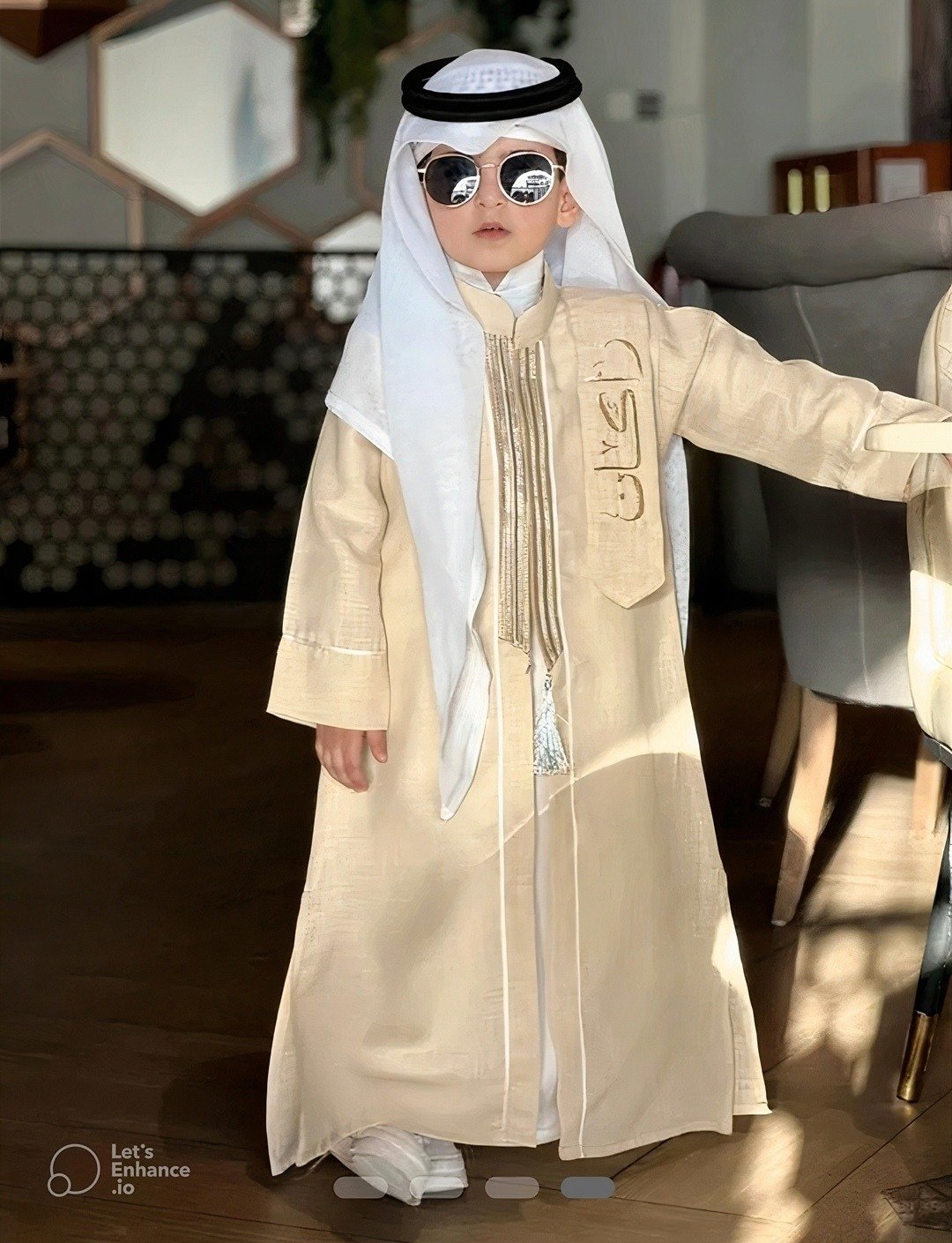 الثوب جممميل ماشاءالله قماشه لينن مرتب والخياطه نظيفه وطلبت اسم ولدي باللون الذهبي والحمدلله طلع زي ماابغى واجمل الله يبارك لكم في رزقكم