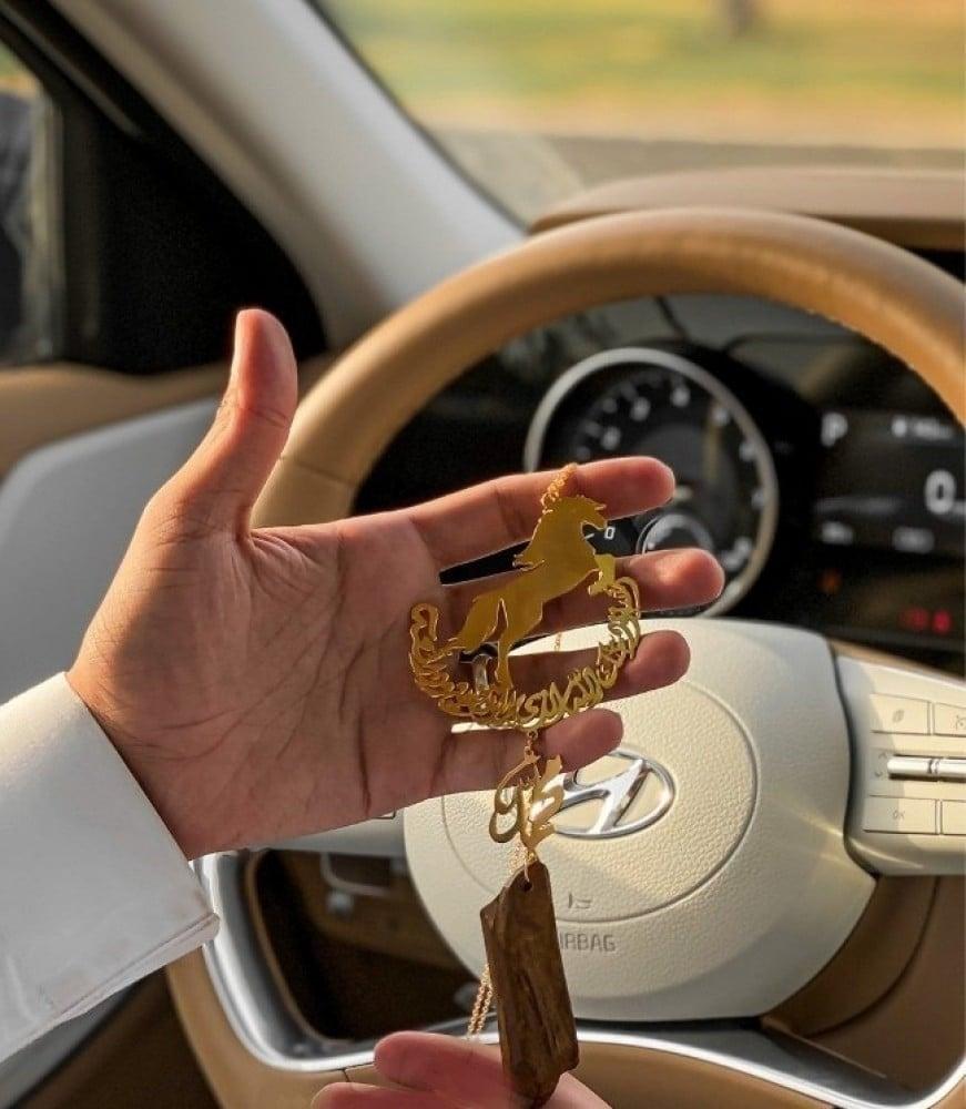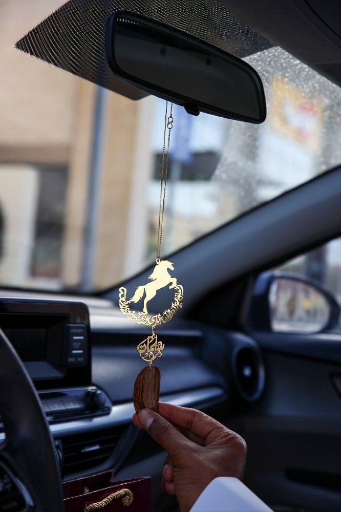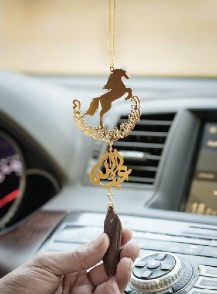 مع رسمة الخيلكتابة الاسم او الحروف حسب الطلب.نمزج الهدايا بالاسم مع رئحة العود الفاخره.عطر سيارتك بتعليقة دائمه.نوفرها بالون الذهبي او الفضي.توصلك بعلبة و كيس