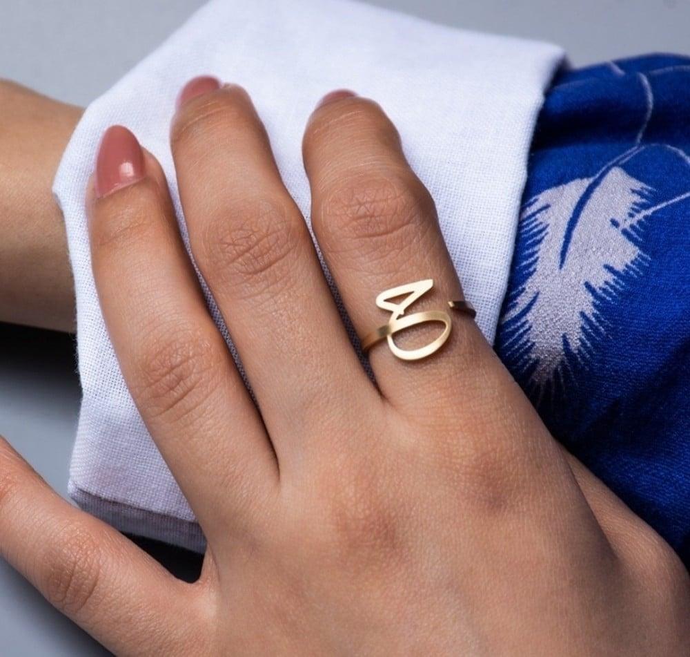 خاتم حرفك مطلي ذهبيتم كتابه الحرف او الاسم حسب الطلبطلاء ذهب عيار 21 قيراطمتوفر باللونين ذهبي او فضيالمقاس فيري سايز يتضيق ويتوسعياتيكم بتغليف شيك وجميل