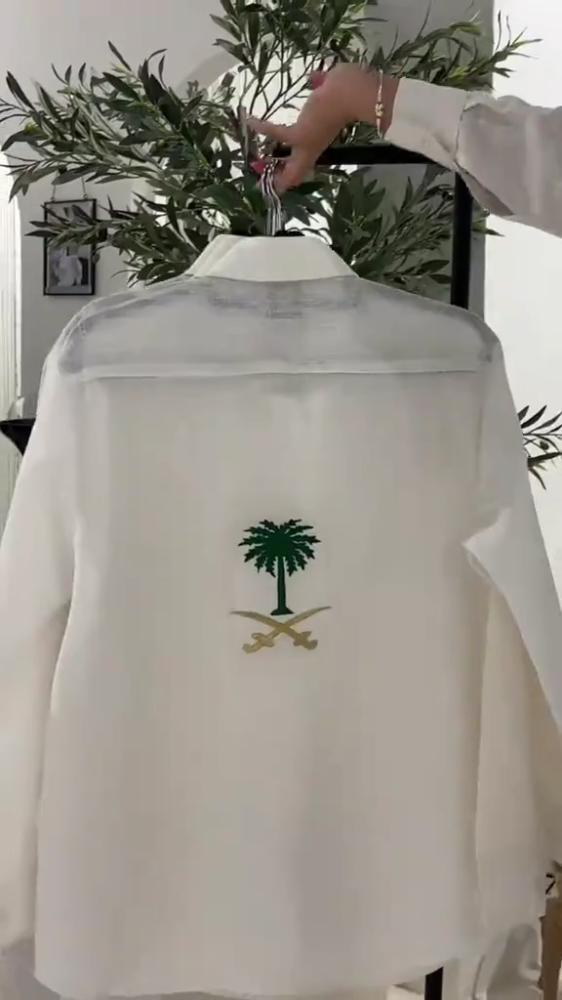 مع تطريز سيفين ونخلة كبير بالخلف حدود ٢٠ سم + صغير من الأمام حدود ٧ سم